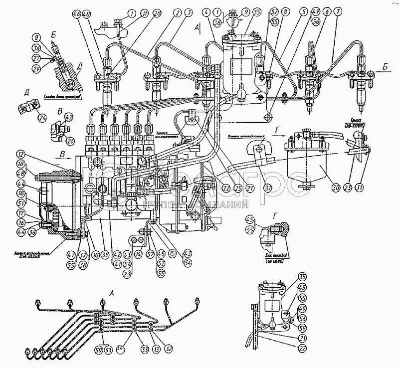 Каталог запасных частей к технике: МТЗ-1222/1523. Трубопроводы топливные и установка топливной аппаратуры