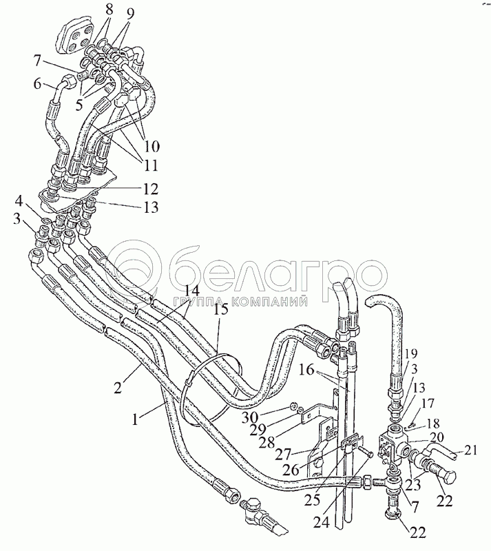| 680-4607140-06 Рукав МТЗ Ду10 М20х1.5 S24 L=800 0/90 (РВД), (А) |