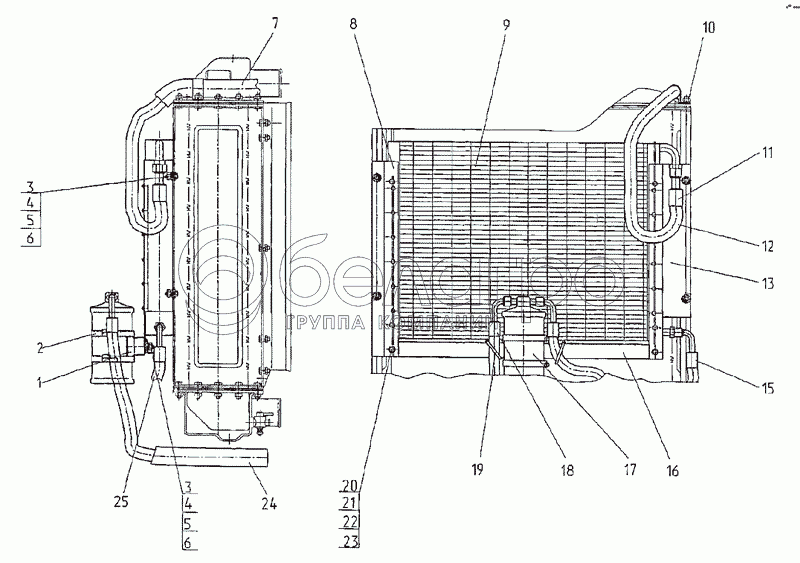 Каталог запасных частей к технике: МТЗ-1222/1523. Установка конденсатора и ресивера