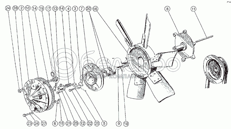 Каталог запасных частей к технике: МТЗ-1222/1523. Установка муфты вентилятора. Установка вентилятора