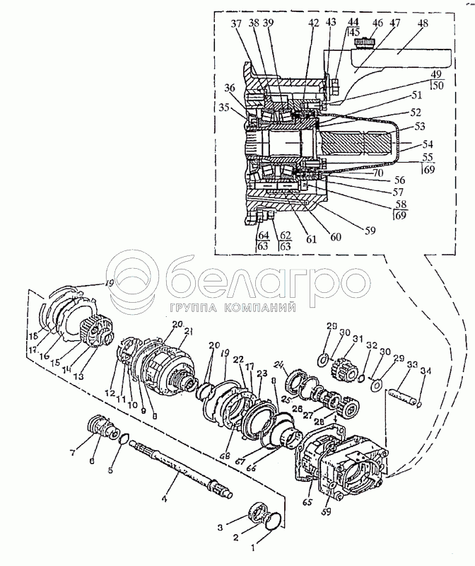 Каталог запасных частей к технике: МТЗ-1222/1523. Вал отбора мощности