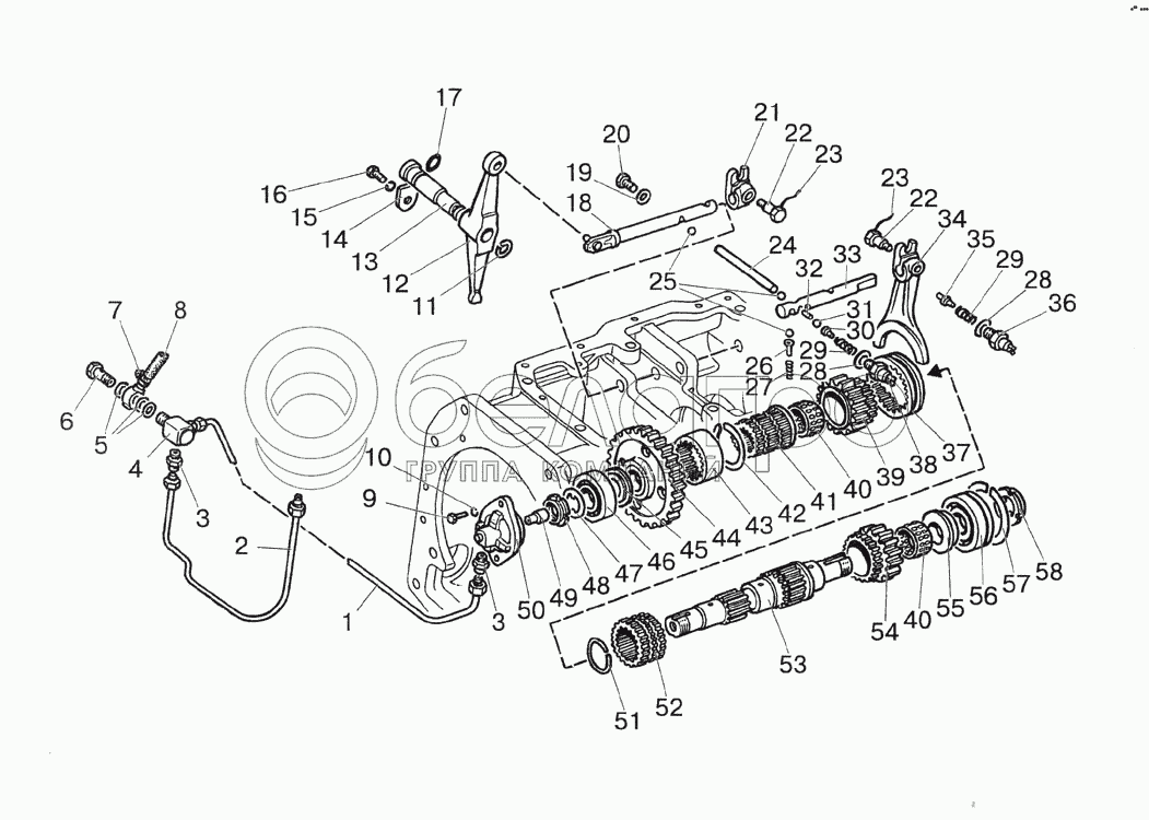 Каталог запасных частей к технике: МТЗ-1522. Вал пониженных передач и заднего хода