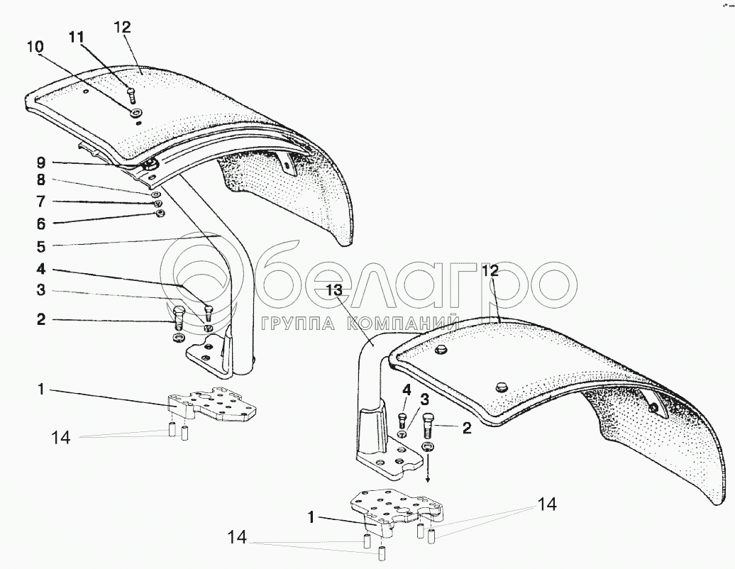Каталог запасных частей к технике: МТЗ-1523. Крылья передних колес