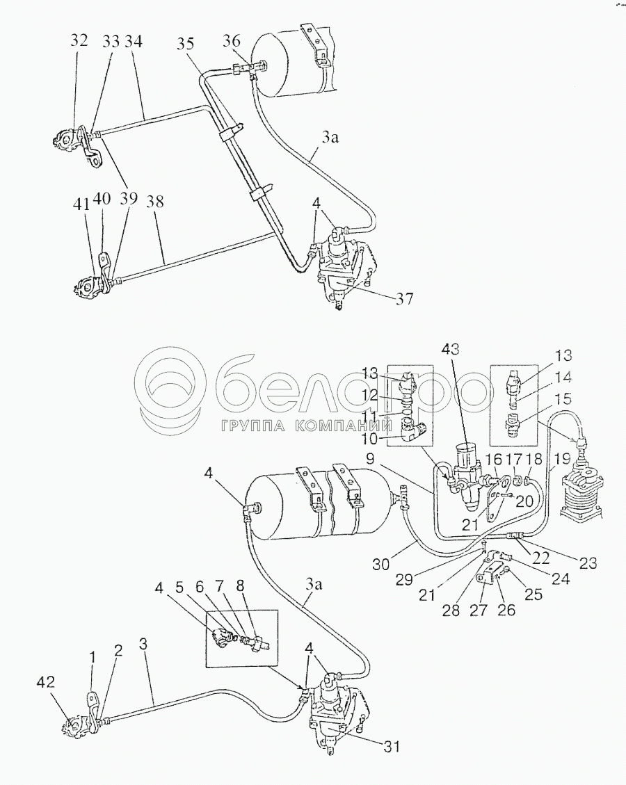 Каталог запасных частей к технике: МТЗ-1523. Трубопроводы и арматура пневмопривода тормозов прицепа