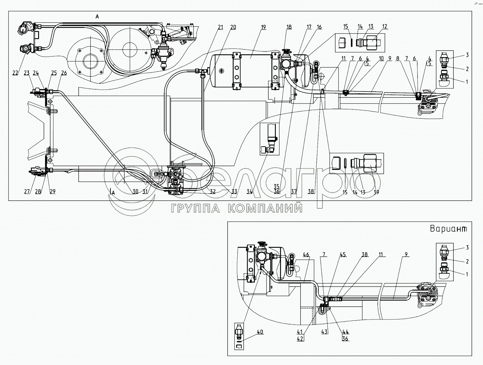 Каталог запасных частей к технике: МТЗ-1523. Трубопроводы и арматура пневмопривода тормозов прицепа