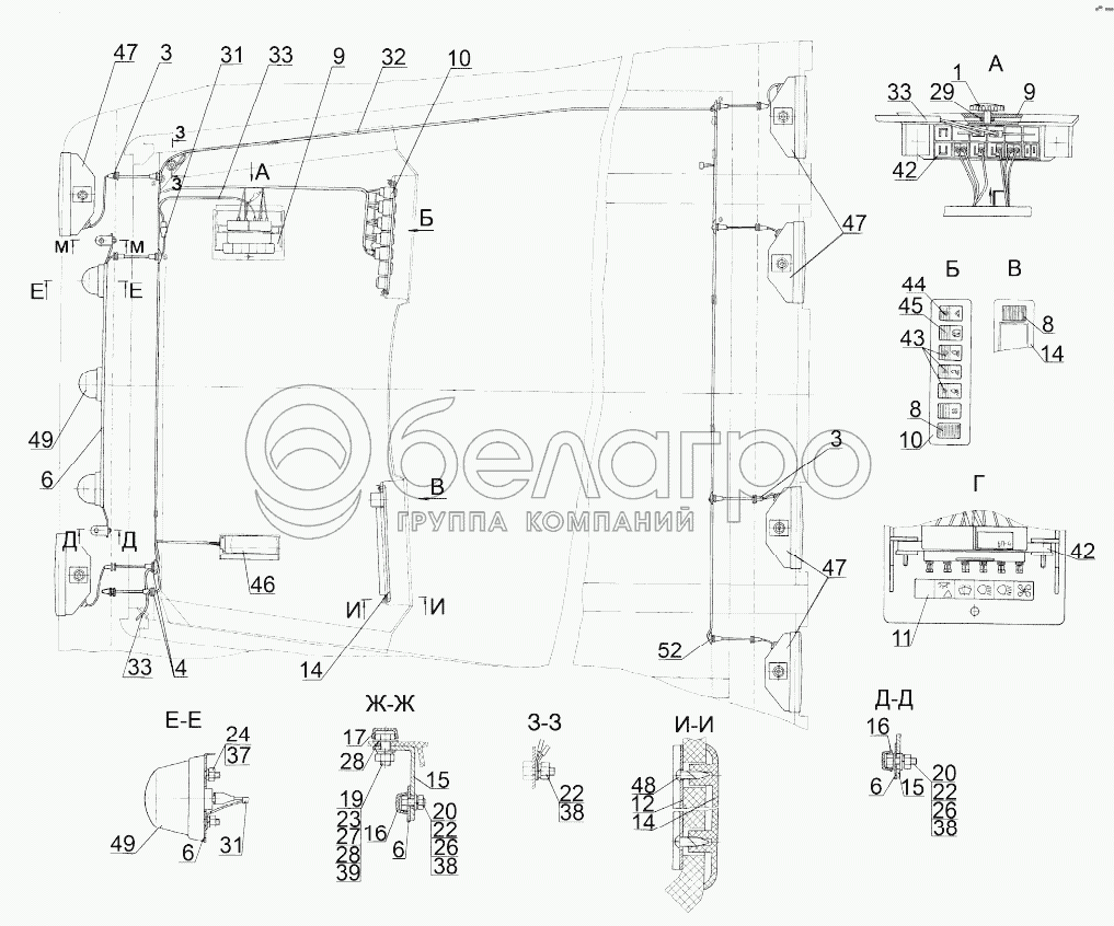 Каталог запасных частей к технике: МТЗ-1523. Установка фар рабочих