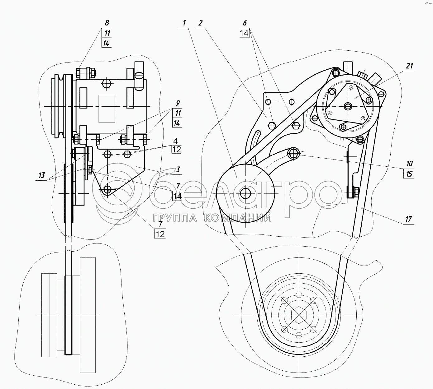 Каталог запасных частей к технике: МТЗ-1523. Установка компрессора