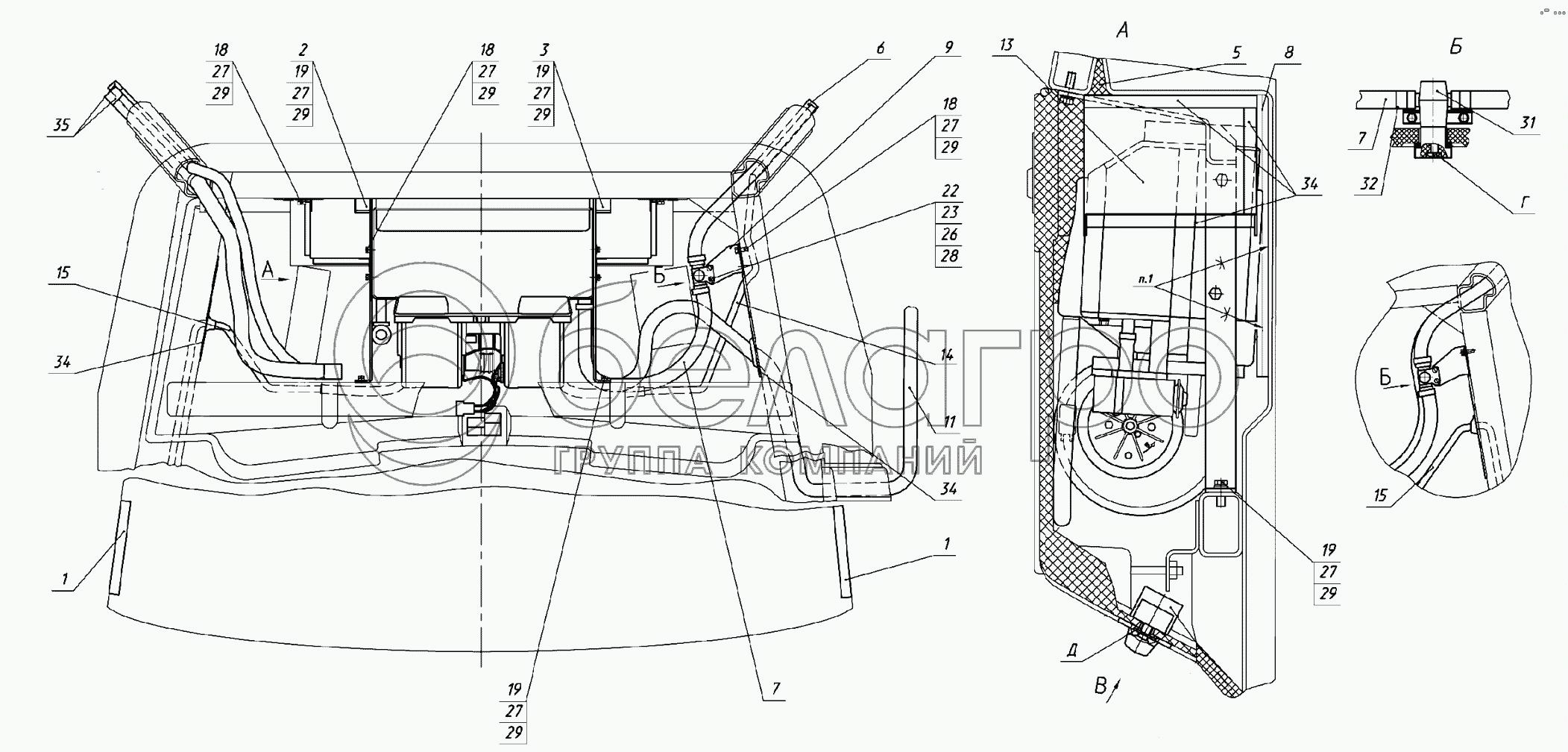 Каталог запасных частей к технике: МТЗ-1523. Установка отопителя-охладителя