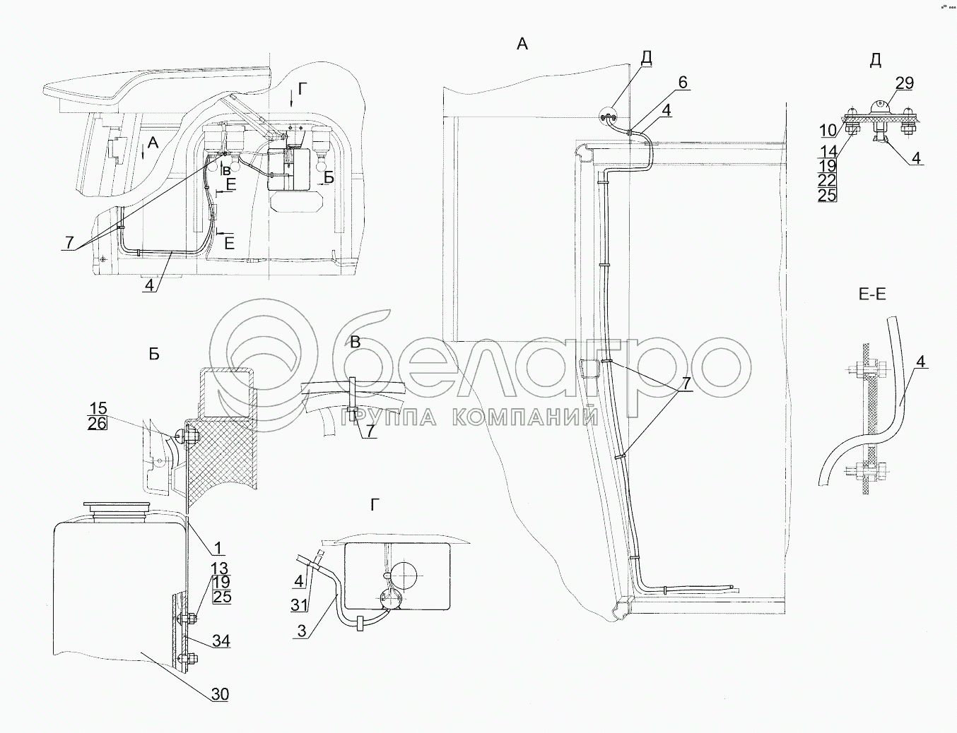 Каталог запасных частей к технике: МТЗ-1523. Установка стеклоомывателя