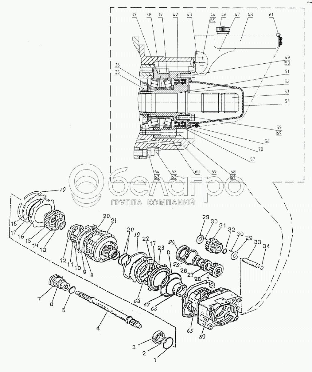Каталог запасных частей к технике: МТЗ-1523. Вал отбора мощности
