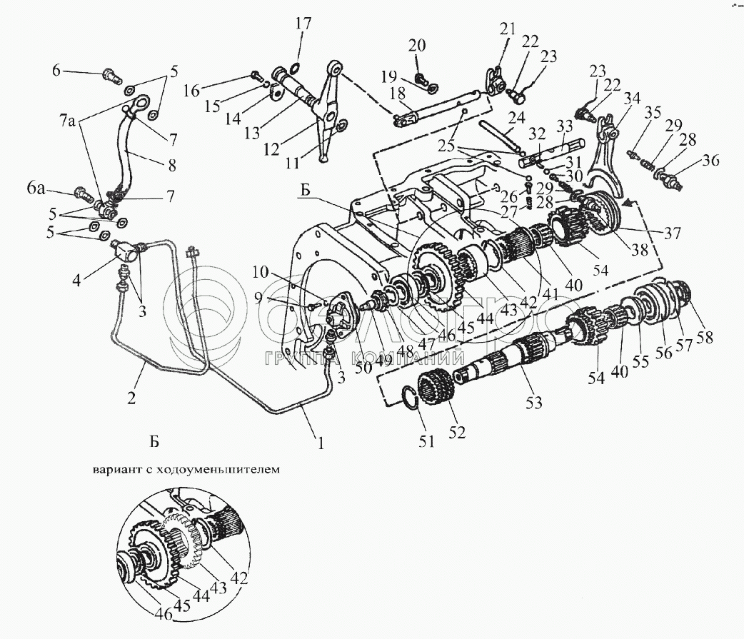Каталог запасных частей к технике: МТЗ-1523. Вал пониженных передач и заднего хода