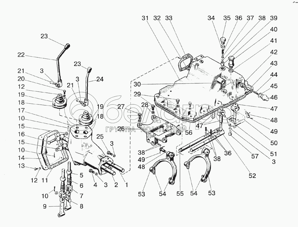 Каталог запасных частей к технике: МТЗ-1523. Механизм управления коробкой передач