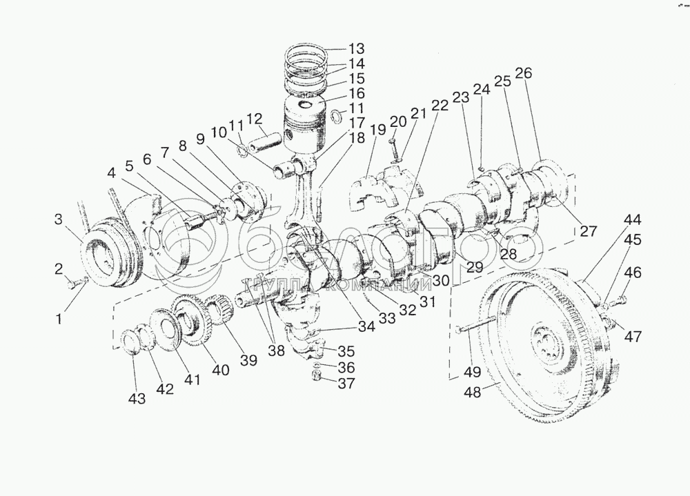 Каталог запасных частей к технике: МТЗ-1523. Поршни и шатуны. Вал коленчатый и маховик