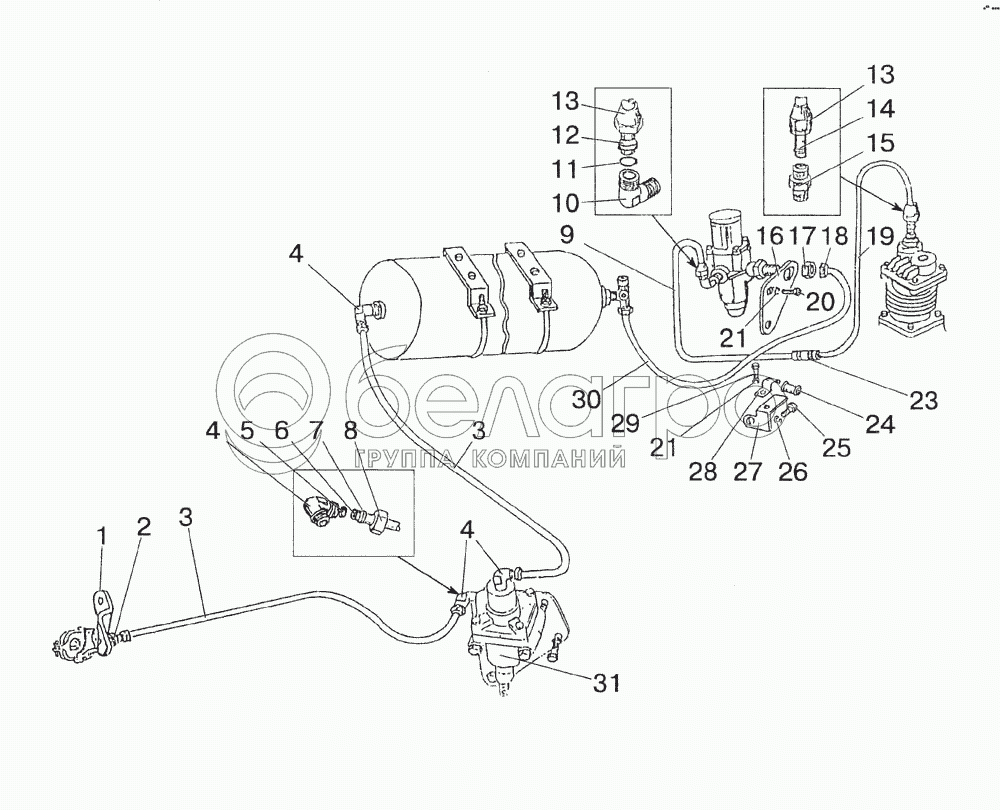 Каталог запасных частей к технике: МТЗ-1523. Трубопроводы и арматура пневмопривода тормозов прицепа