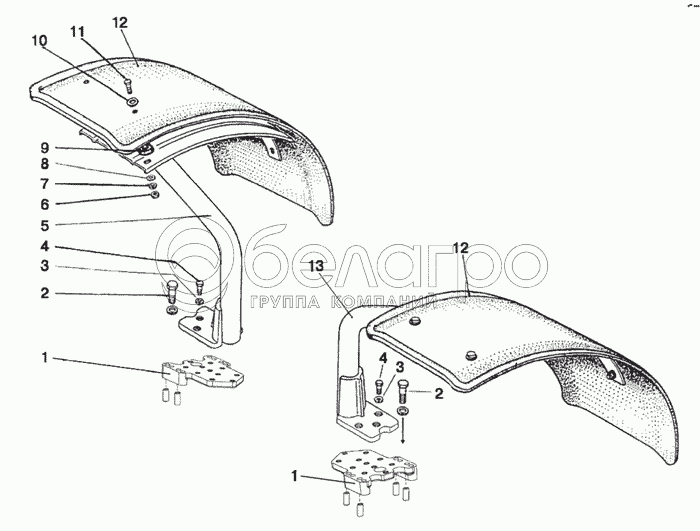 Каталог запасных частей к технике: МТЗ-1523.4. Крылья передних колес