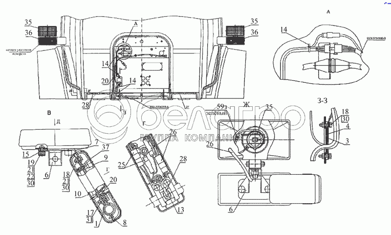 Каталог запасных частей к технике: МТЗ-1523.4. Установка фонарей передних