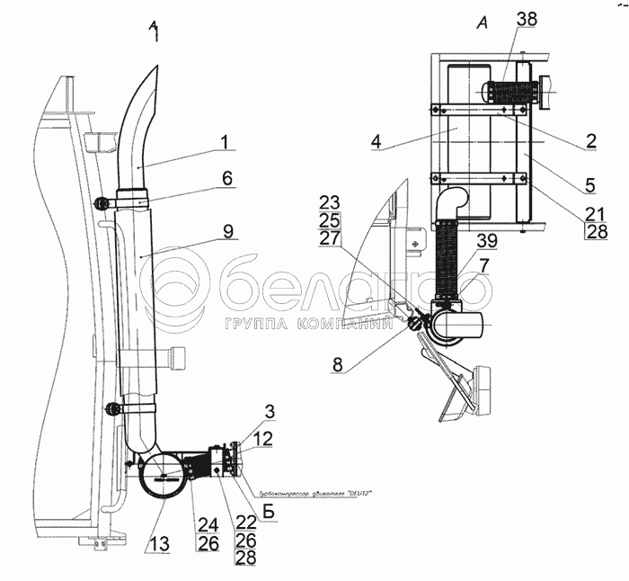 Каталог запасных частей к технике: МТЗ-1523.4. Установка глушителя