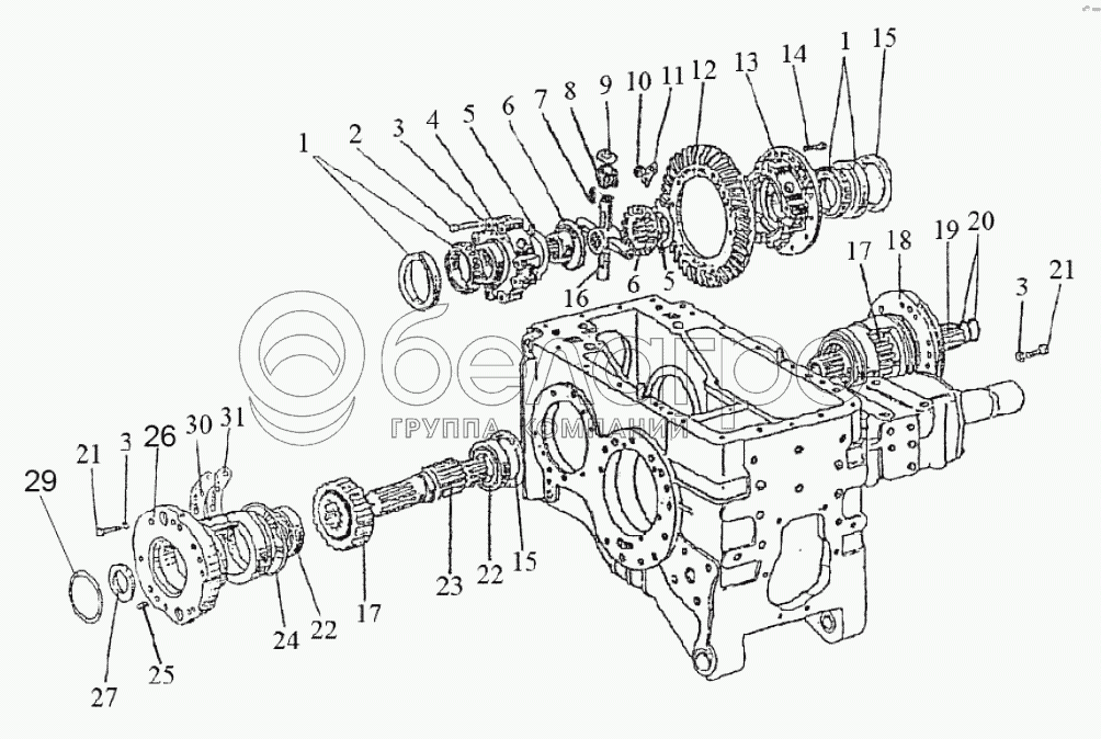 Каталог запасных частей к технике: МТЗ-1523.6. Дифференциал. Стакан подшипников.