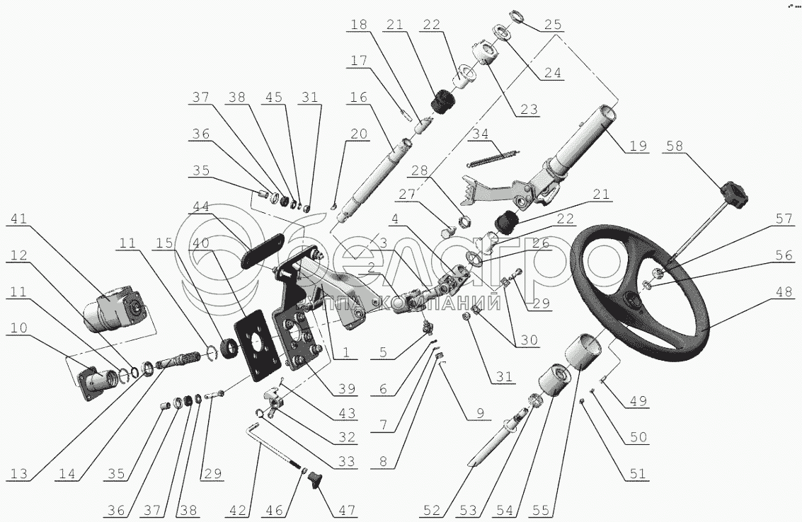 Каталог запасных частей к технике: МТЗ-1523.6. Колонка рулевая