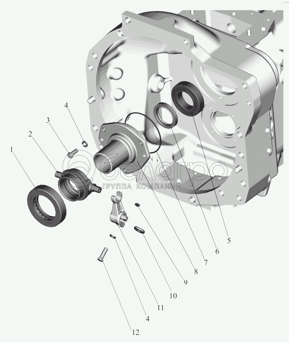 Каталог запасных частей к технике: МТЗ-1523.6. Корпус сцепления. Отводка.
