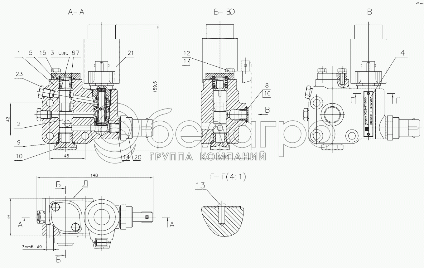 Каталог запасных частей к технике: МТЗ-1523.6. Распределитель 2522-4212010