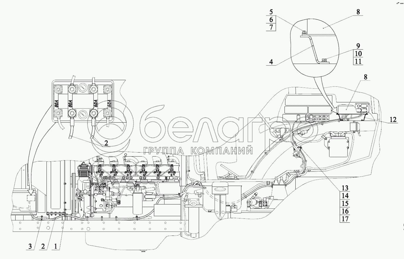 Каталог запасных частей к технике: МТЗ-1523.6. Установка блока коммутации и защиты