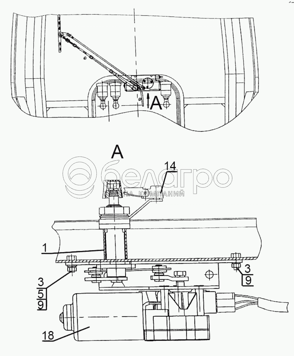 Каталог запасных частей к технике: МТЗ-1523.6. Установка переднего стеклоочистителя