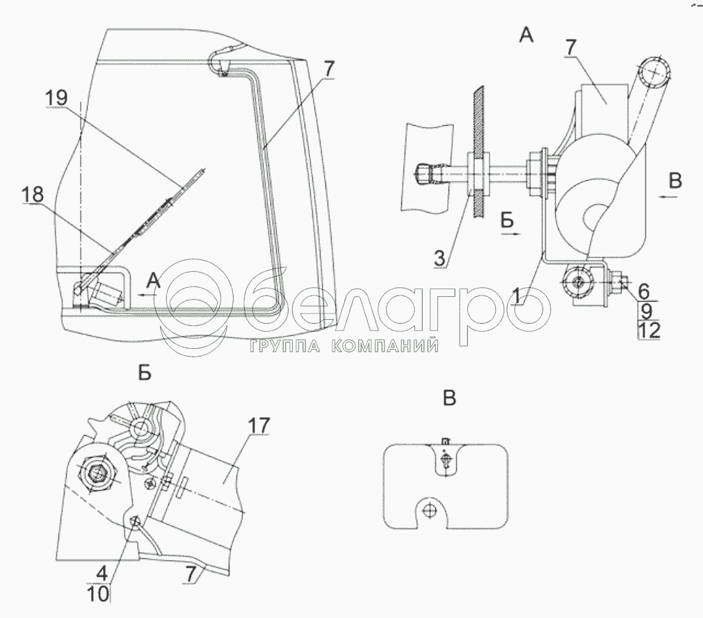 Каталог запасных частей к технике: МТЗ-1523.6. Установка стеклоочистителя заднего