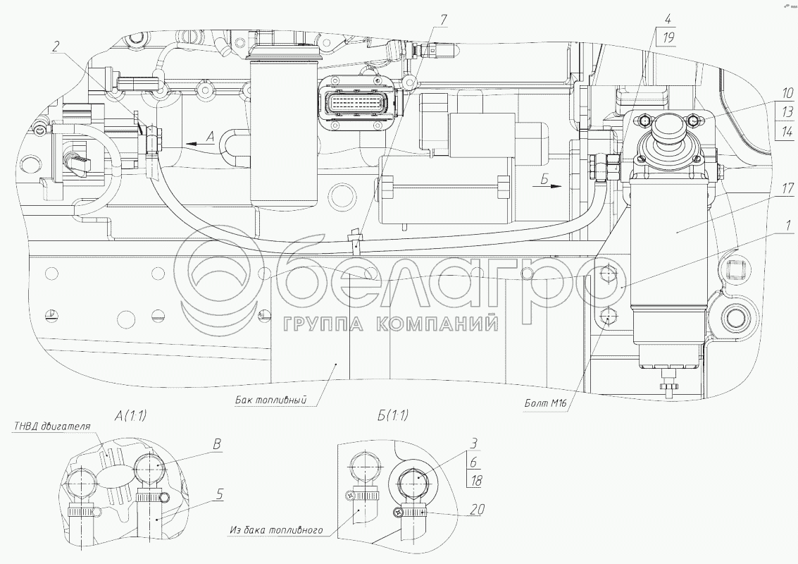 Каталог запасных частей к технике: МТЗ-1523.6. Установка топливного фильтра