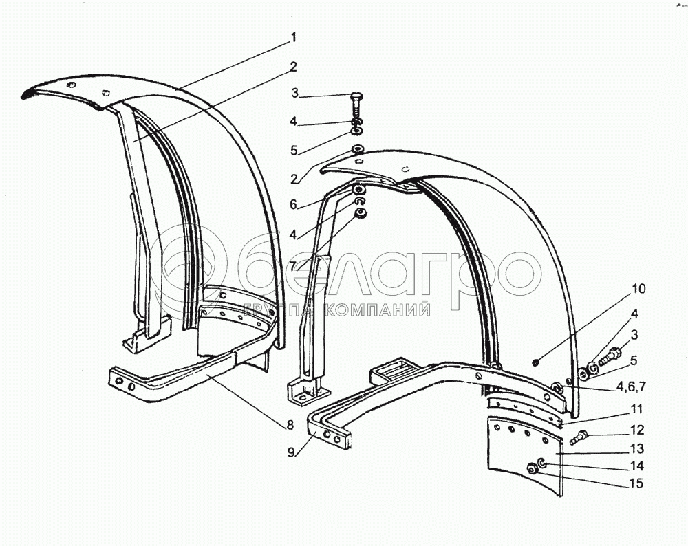 Каталог запасных частей к технике: МТЗ-1523 (2008). Крылья передних колес