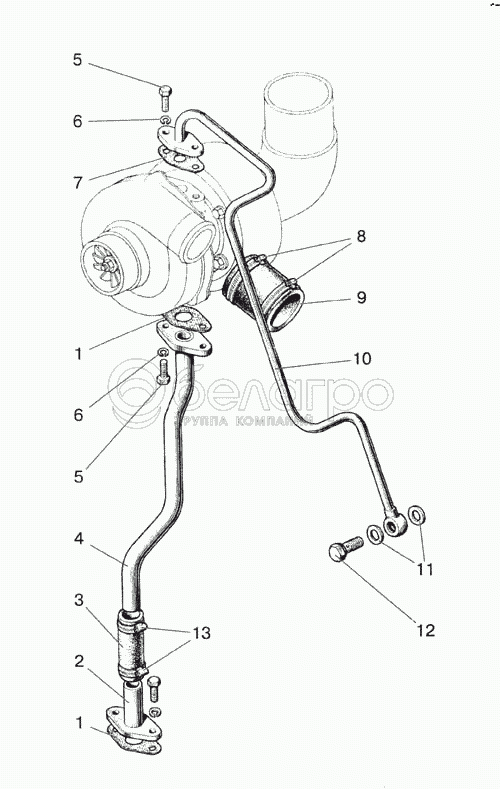Каталог запасных частей к технике: МТЗ-1523 (2008). Маслопроводы турбокомпрессора