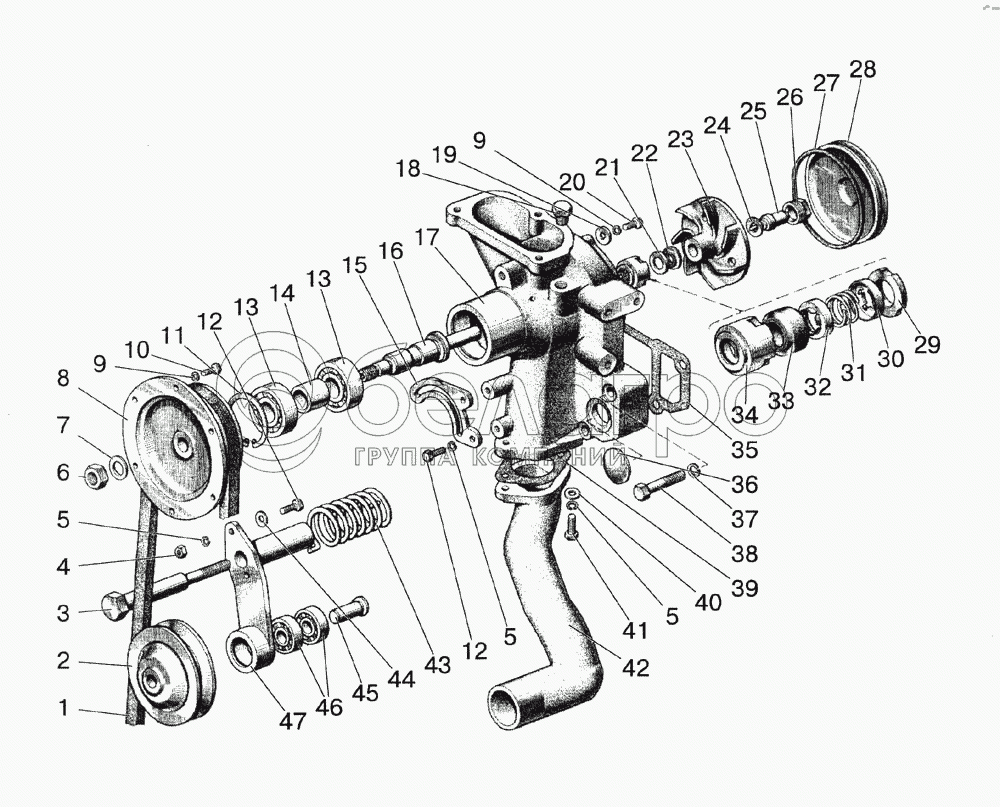 Каталог запасных частей к технике: МТЗ-1523 (2008). Насос водяной и натяжитель