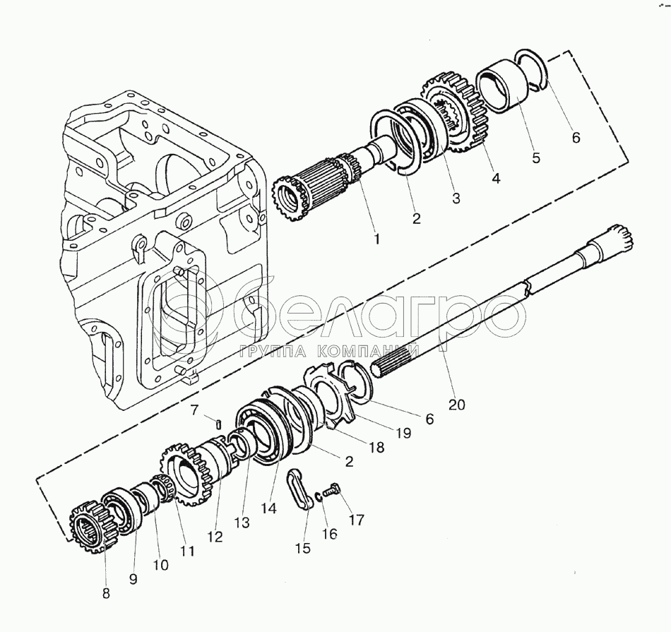 Каталог запасных частей к технике: МТЗ-1523 (2008). Вал блока шестерен