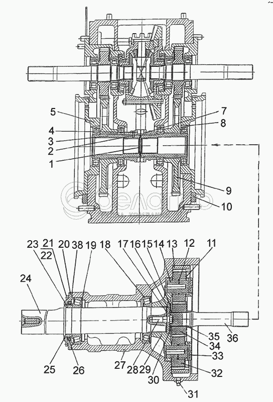 Корпус заднего моста, передача конечная, механизм отключения привода независимого ВОМ