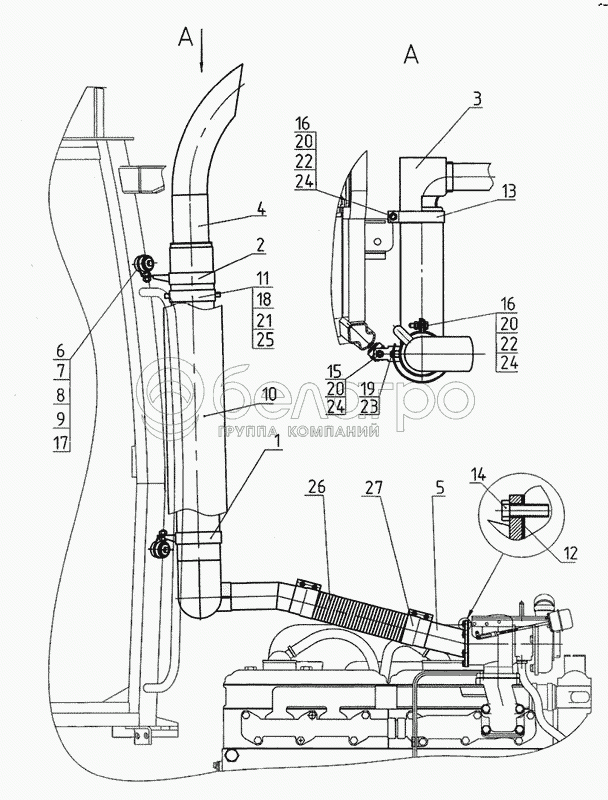 Каталог запасных частей к технике: МТЗ-2022. Установка глушителя