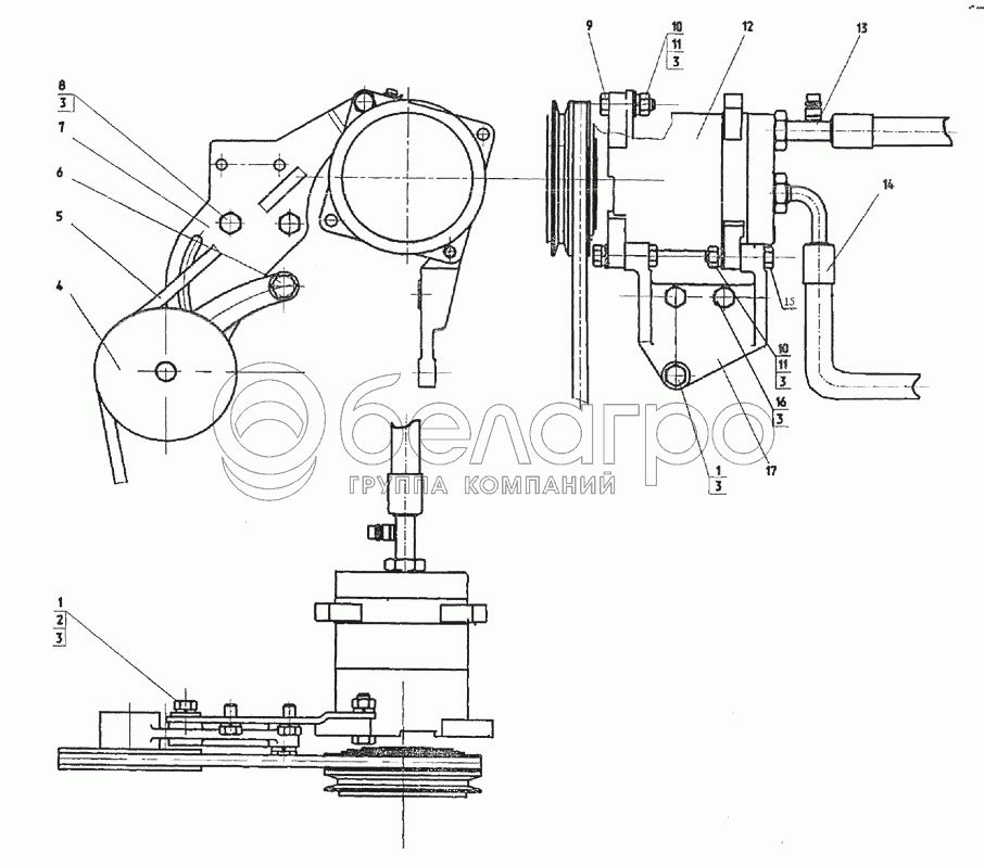 Каталог запасных частей к технике: МТЗ-2022. Установка компрессора
