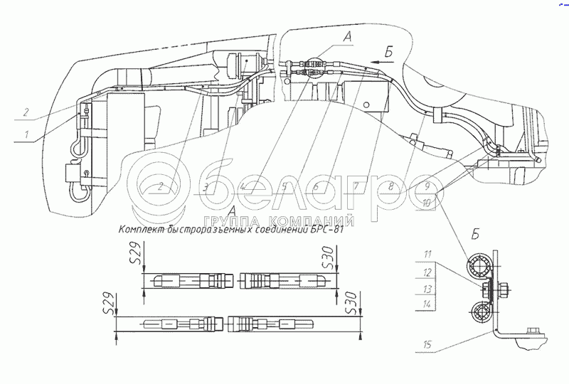Каталог запасных частей к технике: МТЗ-2022. Установка шлангов кондиционера