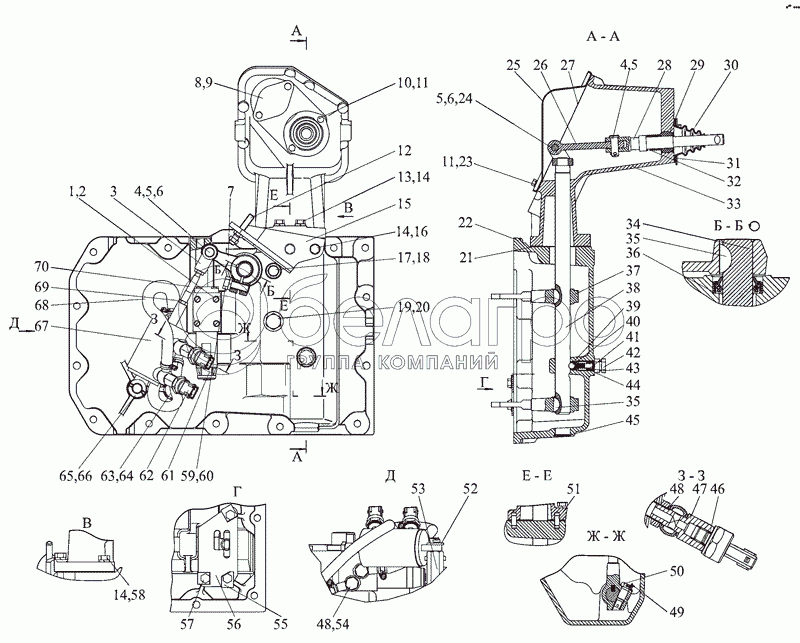 Каталог запасных частей к технике: МТЗ-2103. Механизм управления
