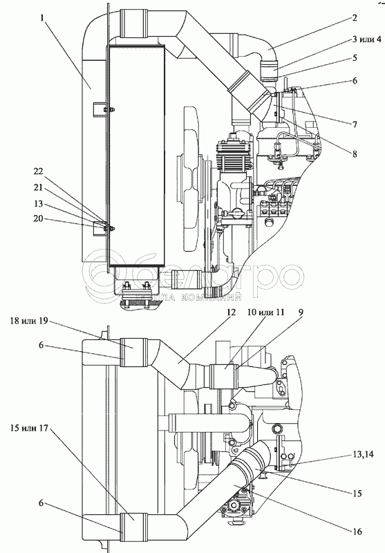 Каталог запасных частей к технике: МТЗ-2103. Охлаждение наддувочного воздуха
