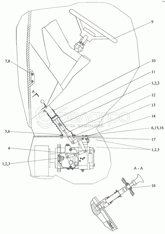 Каталог запасных частей к технике: МТЗ-2103. Привод поворота рулевой