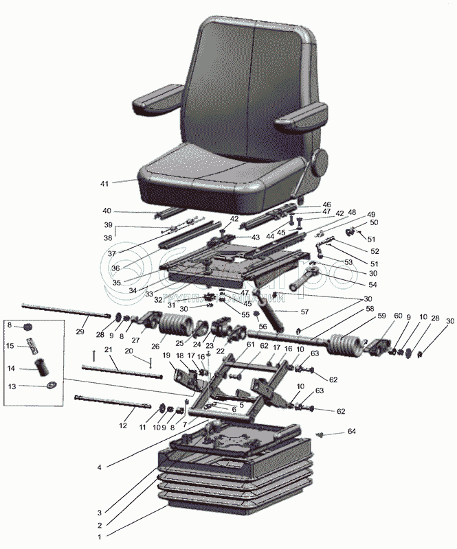 Каталог запасных частей к технике: МТЗ-2103. Сиденье оператора
