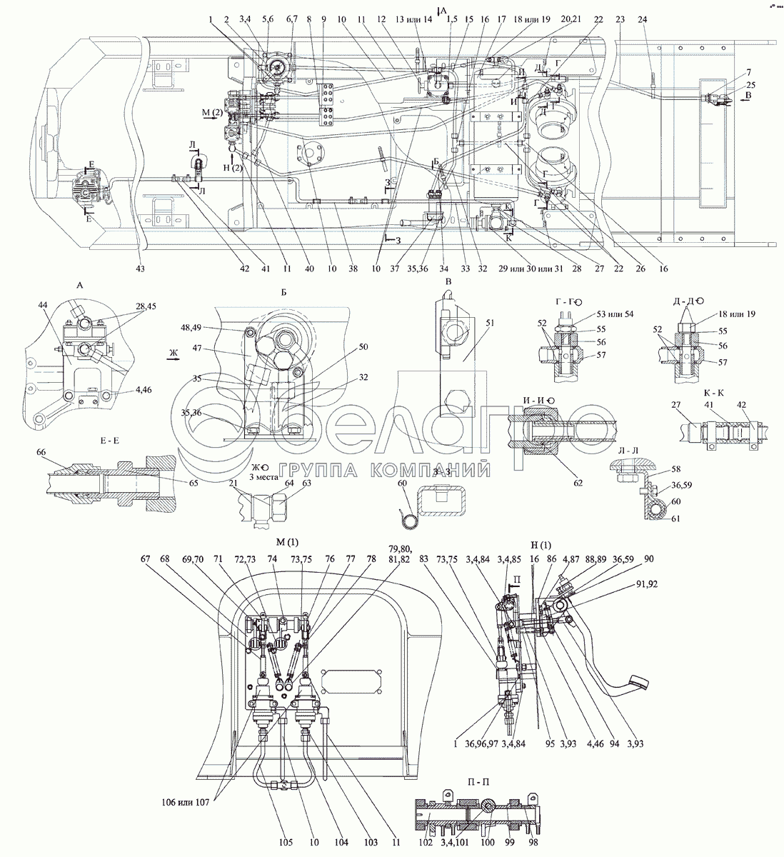 Каталог запасных частей к технике: МТЗ-2103. Система управления тормозами