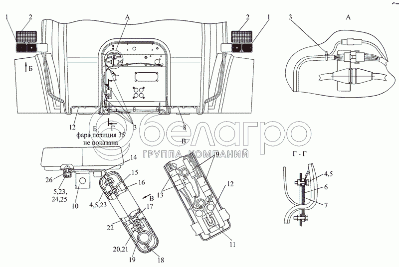 Каталог запасных частей к технике: МТЗ-2103. Установка фонарей передних