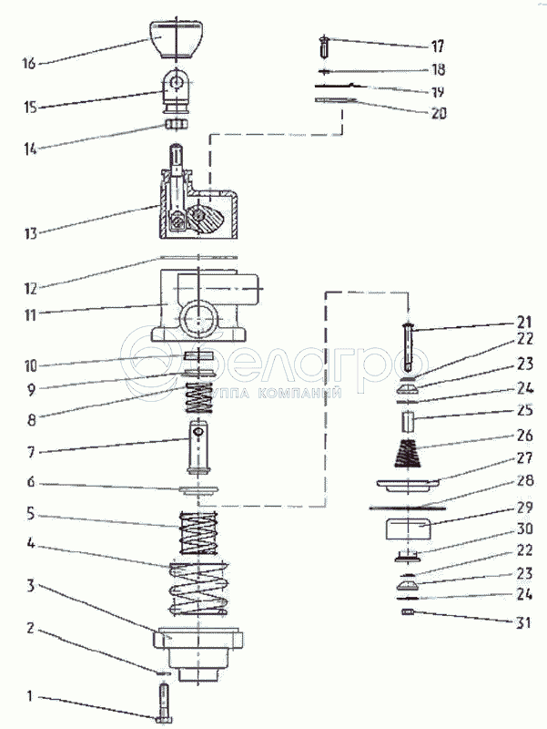 Каталог запасных частей к технике: МТЗ-2522. Кран тормозной двухпроводный