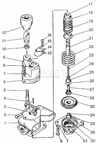 Каталог запасных частей к технике: МТЗ-2522. Кран тормозной однопроводный