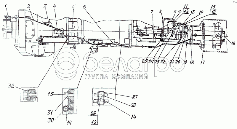 Каталог запасных частей к технике: МТЗ-2522. Пневмопривод тормозов прицепа (однопроводный)