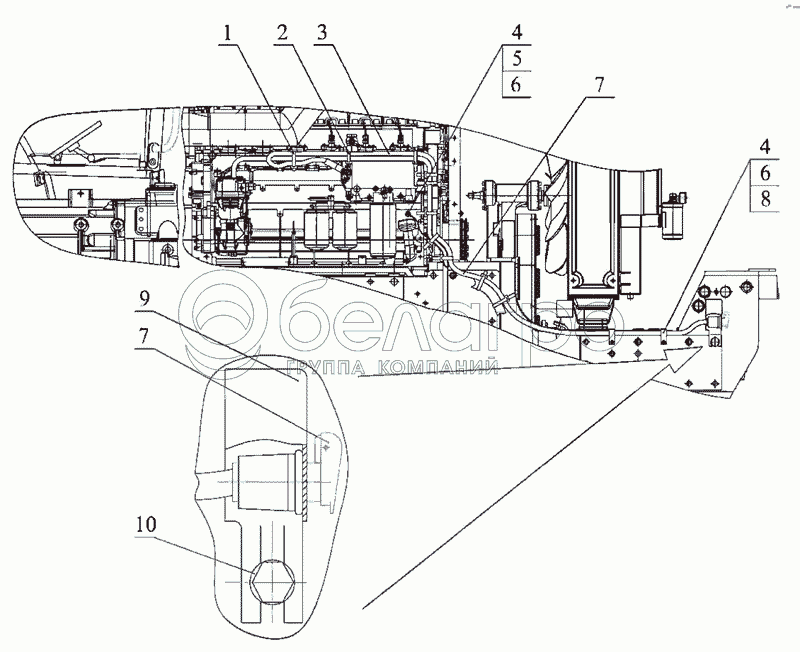 Установка дизеля (для тракторов 2522ДВ/3022ДВ/2522.1/3022.1)