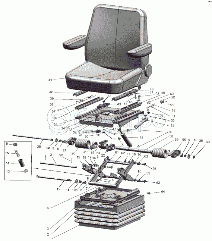 Каталог запасных частей к технике: МТЗ-2522. Сиденье оператора