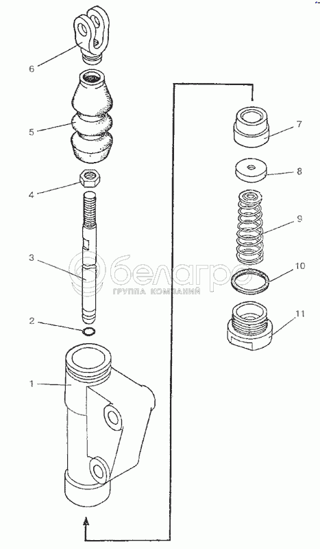 Каталог запасных частей к технике: МТЗ-2522. Цилиндр главный 1221В-1602610