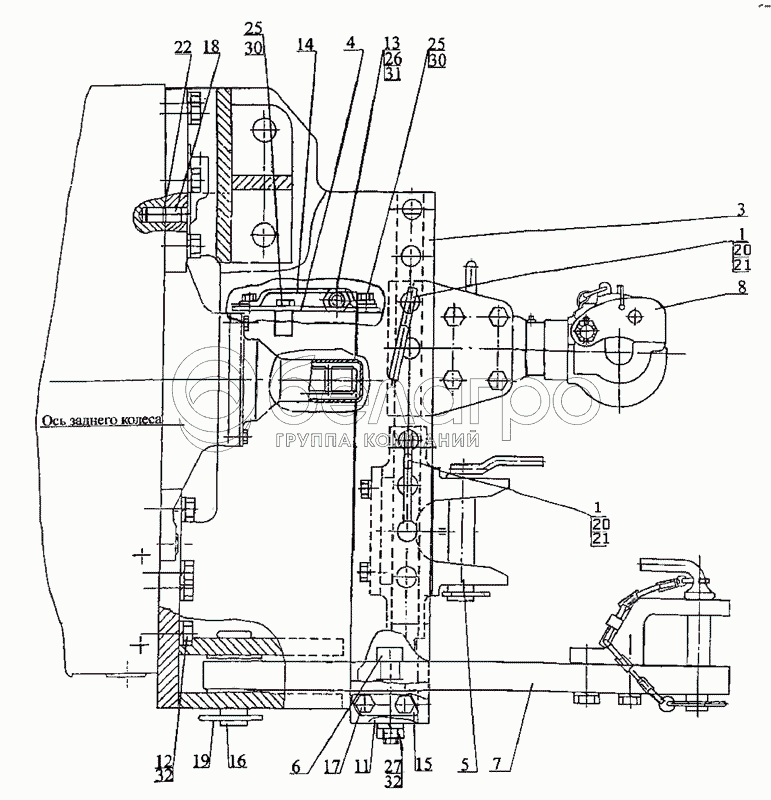 Каталог запасных частей к технике: МТЗ-2522. Тягово-сцепное устройство